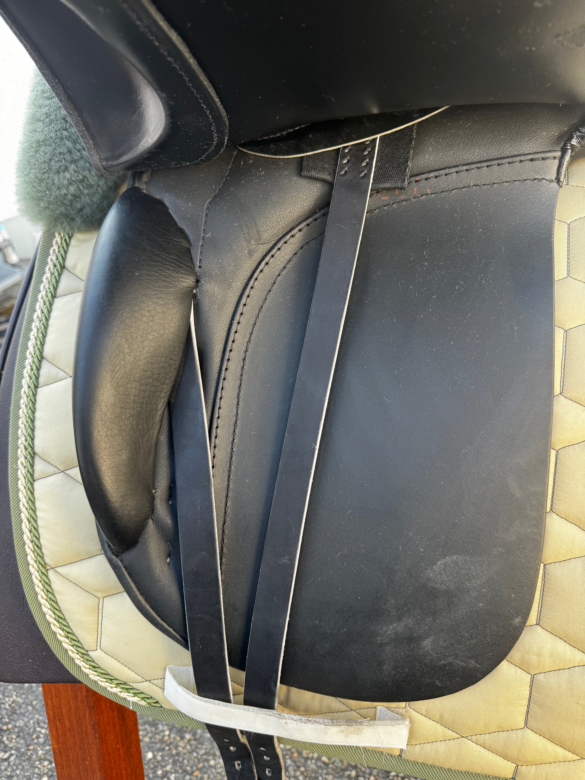 Der Passier Corona II passt optimal auf gerade Pferderücken mit breiten Dornfortsätzen. Den Reiter setzt er dicht ans Pferd, ohne ihn einzuengen. Der Sattel ist aus erster Hand, wurde 2024 erworben und kaum genutzt.