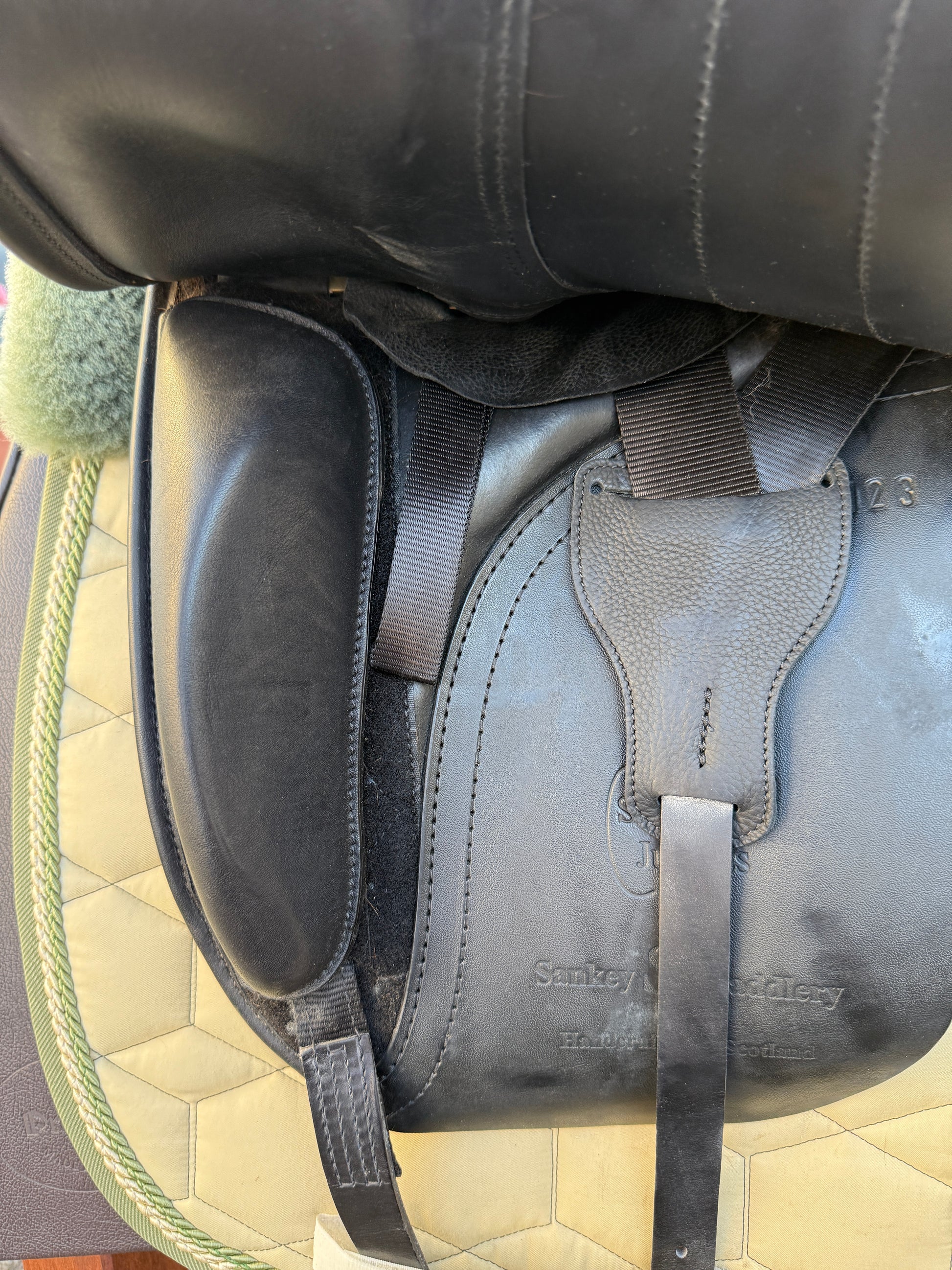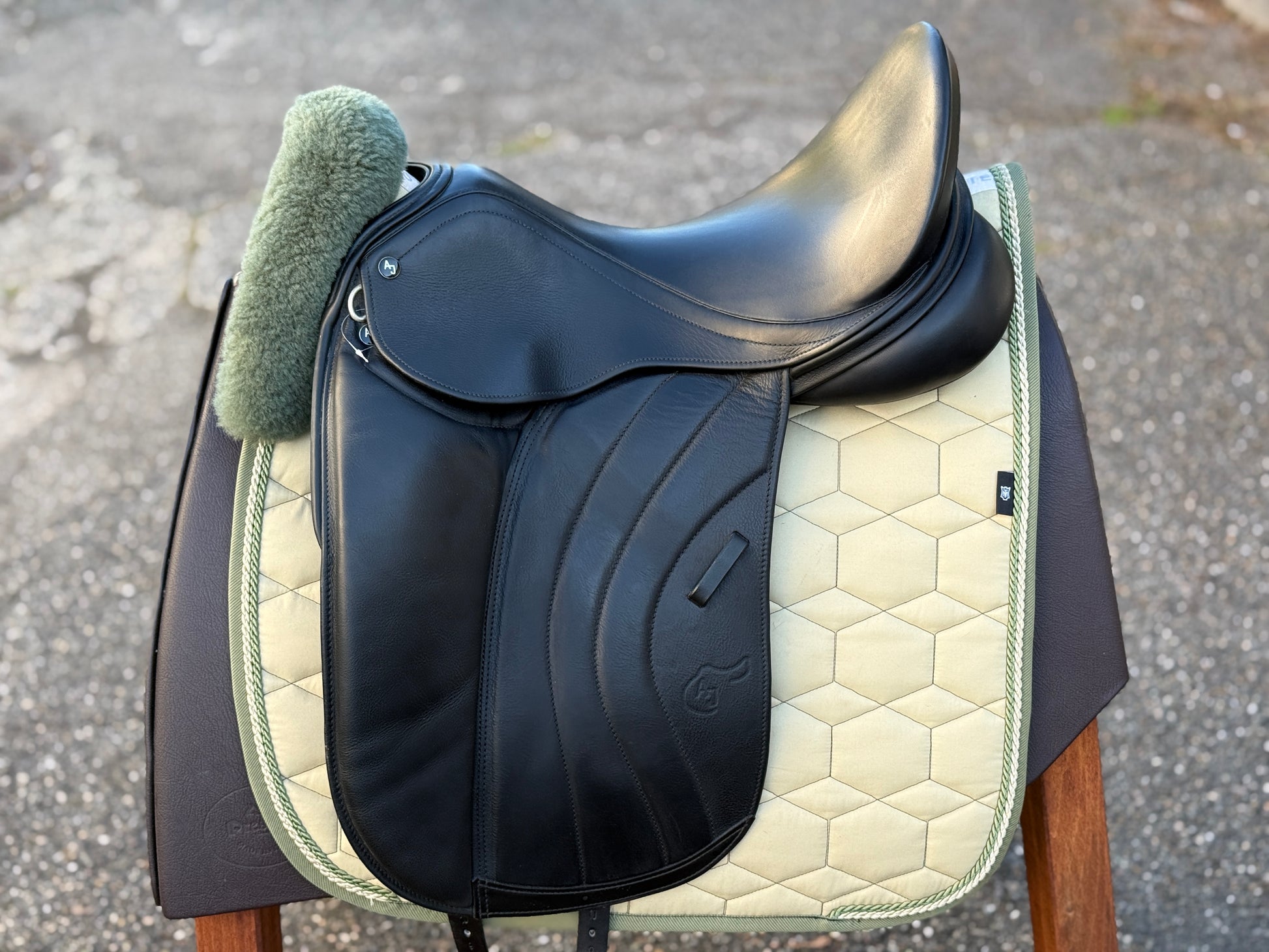 Dieser Sankey Just LS Dressursattel passt gut auf großrahmige Pferde mit ausgeprägter Schulterpartie. Der tiefe Sitz setzt den Reiter dicht an das Pferd. Der Sattel ist aus erster Hand und wurde so gut wie nicht genutzt. Er ist daher neuwertig!
