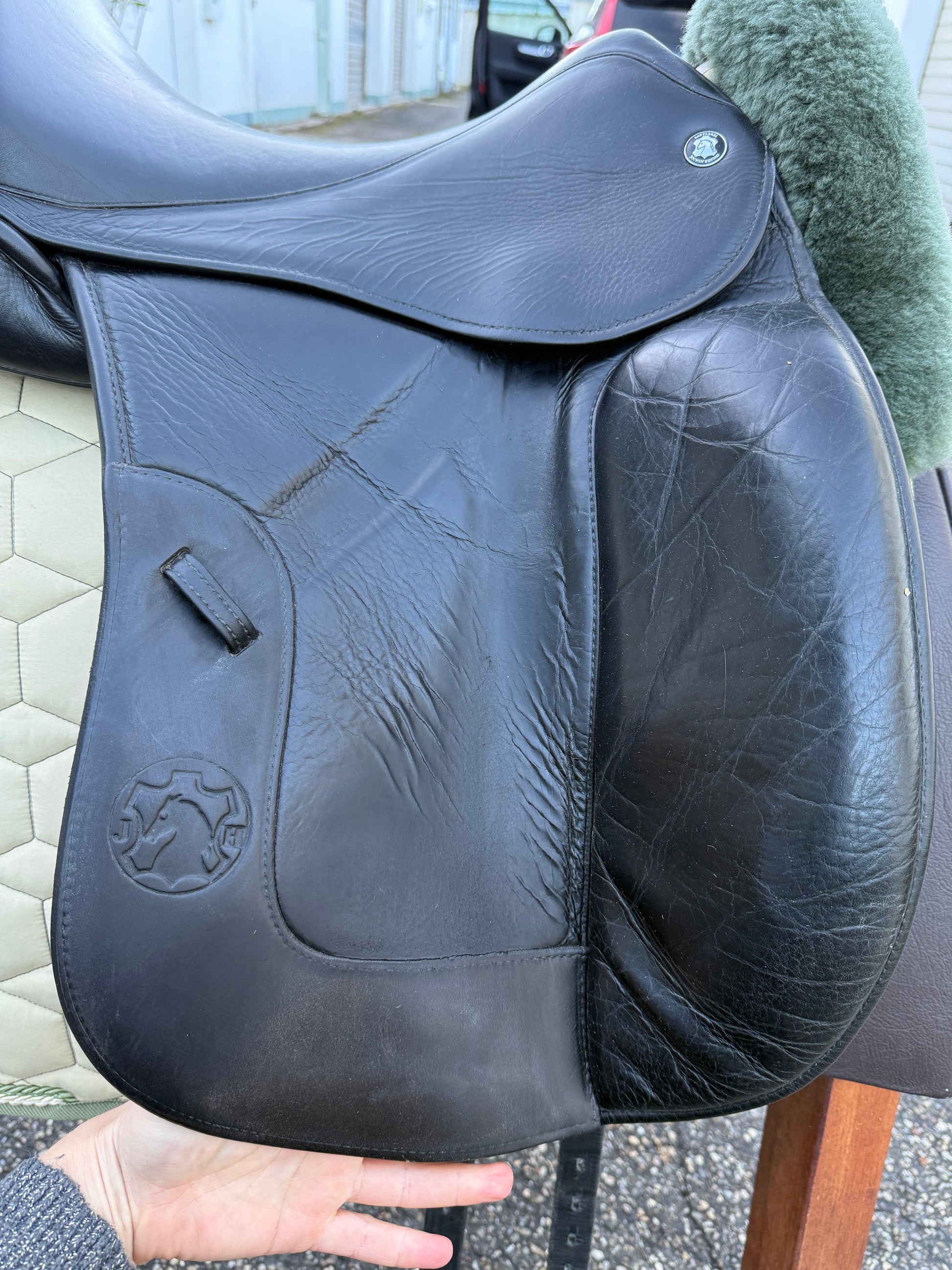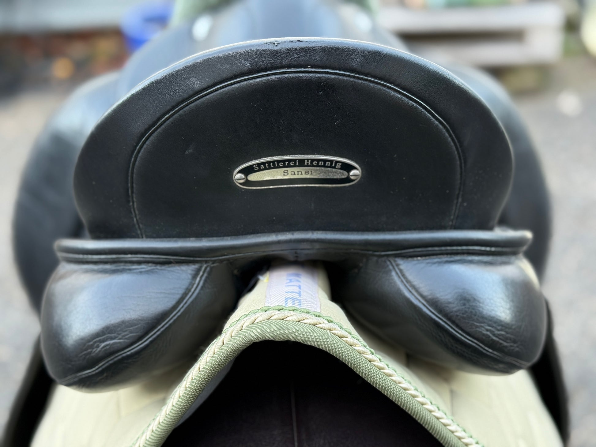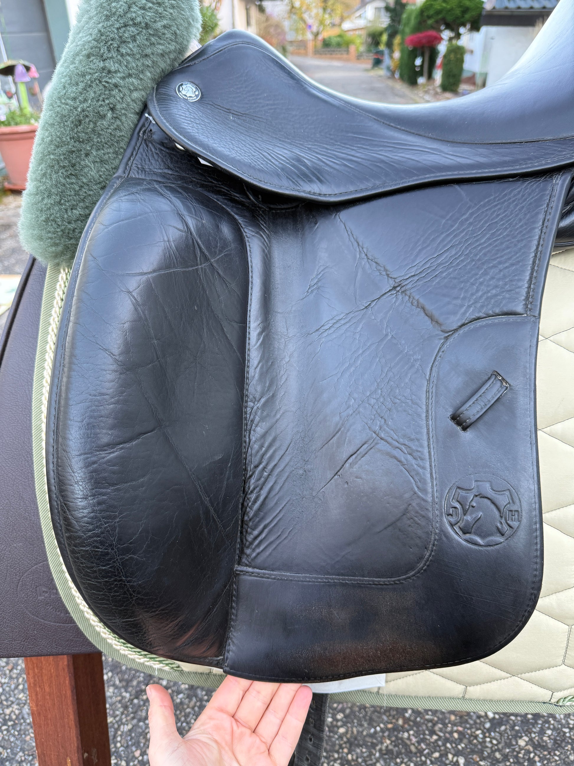 Wunderschöner Hennig Dressursattel in der Monoblatt-Ausführung mit Klettpausche. Absolut luxuriöses Reitgefühl & keine Sitzprothese.