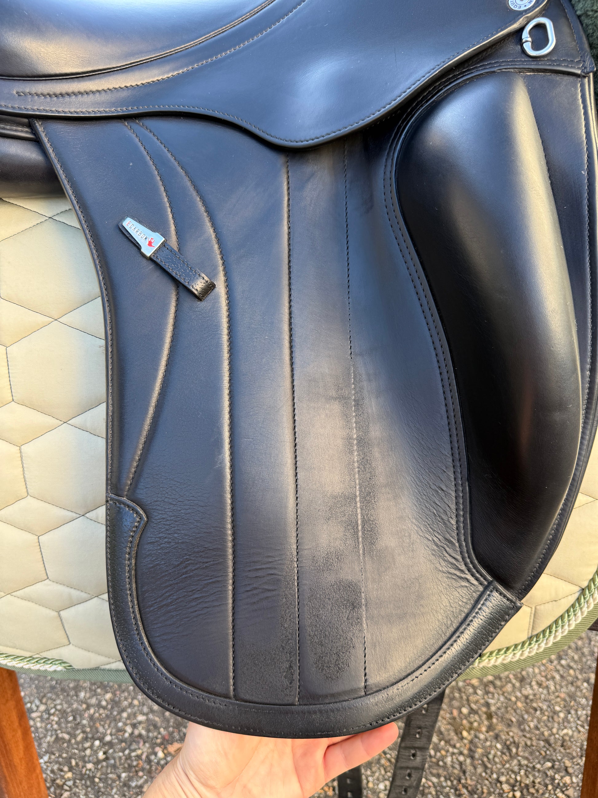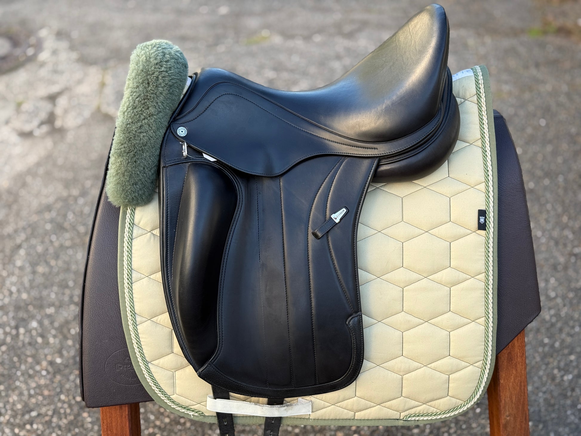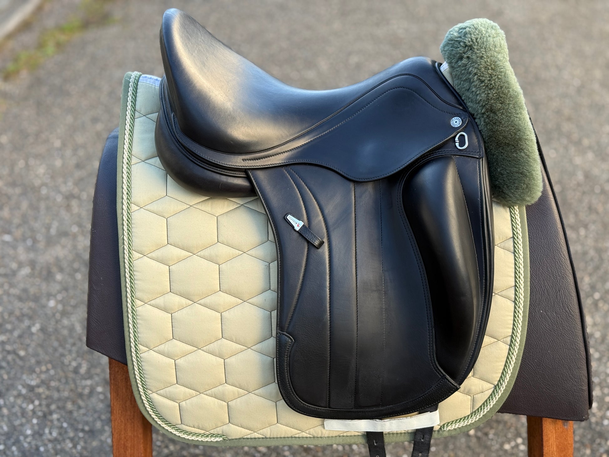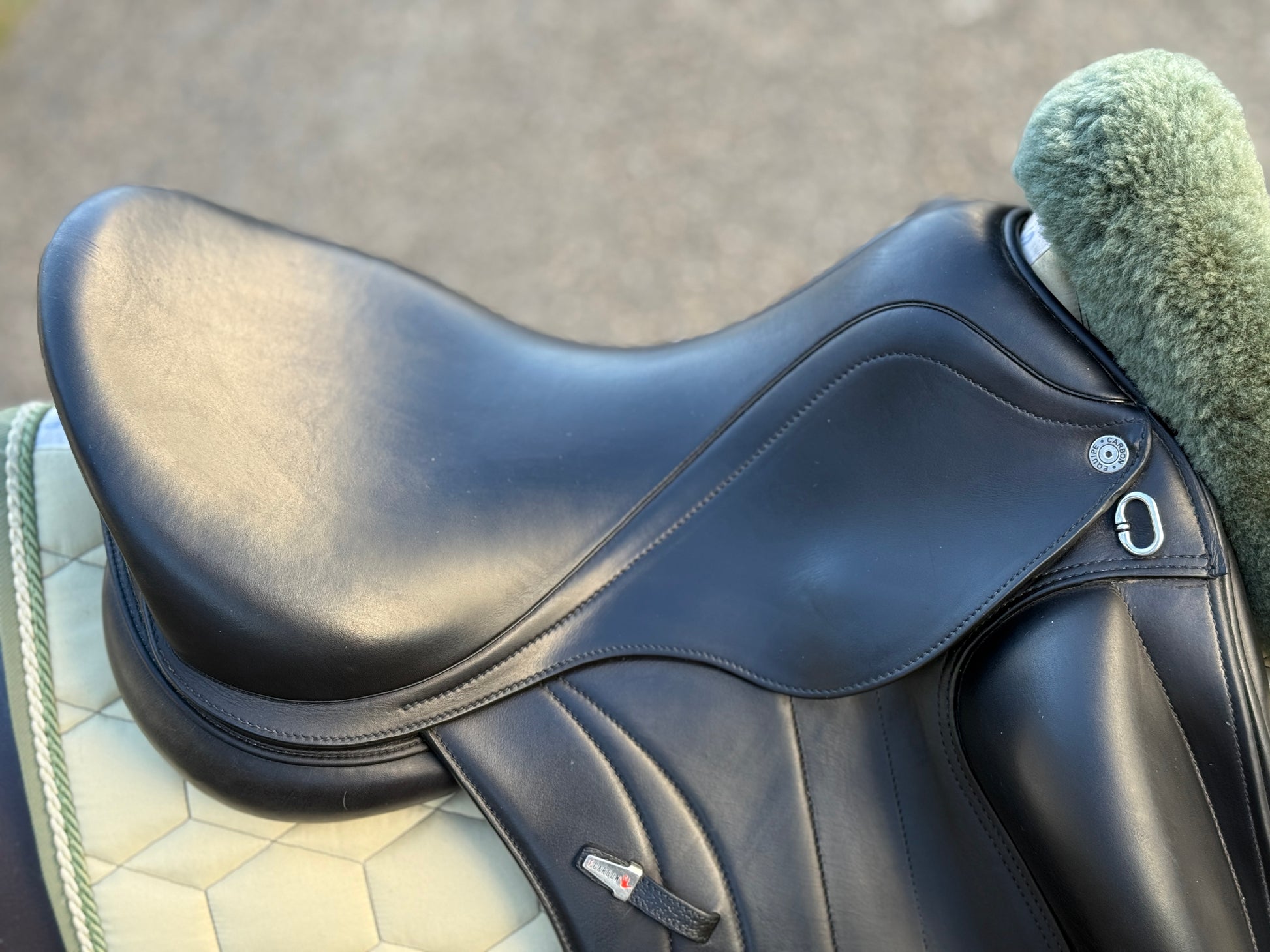 Sehr gut erhaltener Dressursattel (Baujahr 2023) aus dem Hause Equipe mit sehr tiefem Sitz, Monoblatt und großer aufgesetzter Pausche. Viel dichter kann man nicht am Pferd sitzen! Er passt perfekt auf kurze Pferde und Ponyrücken mit normalem bis wenig Widerrist und normalem Rippenbogen.