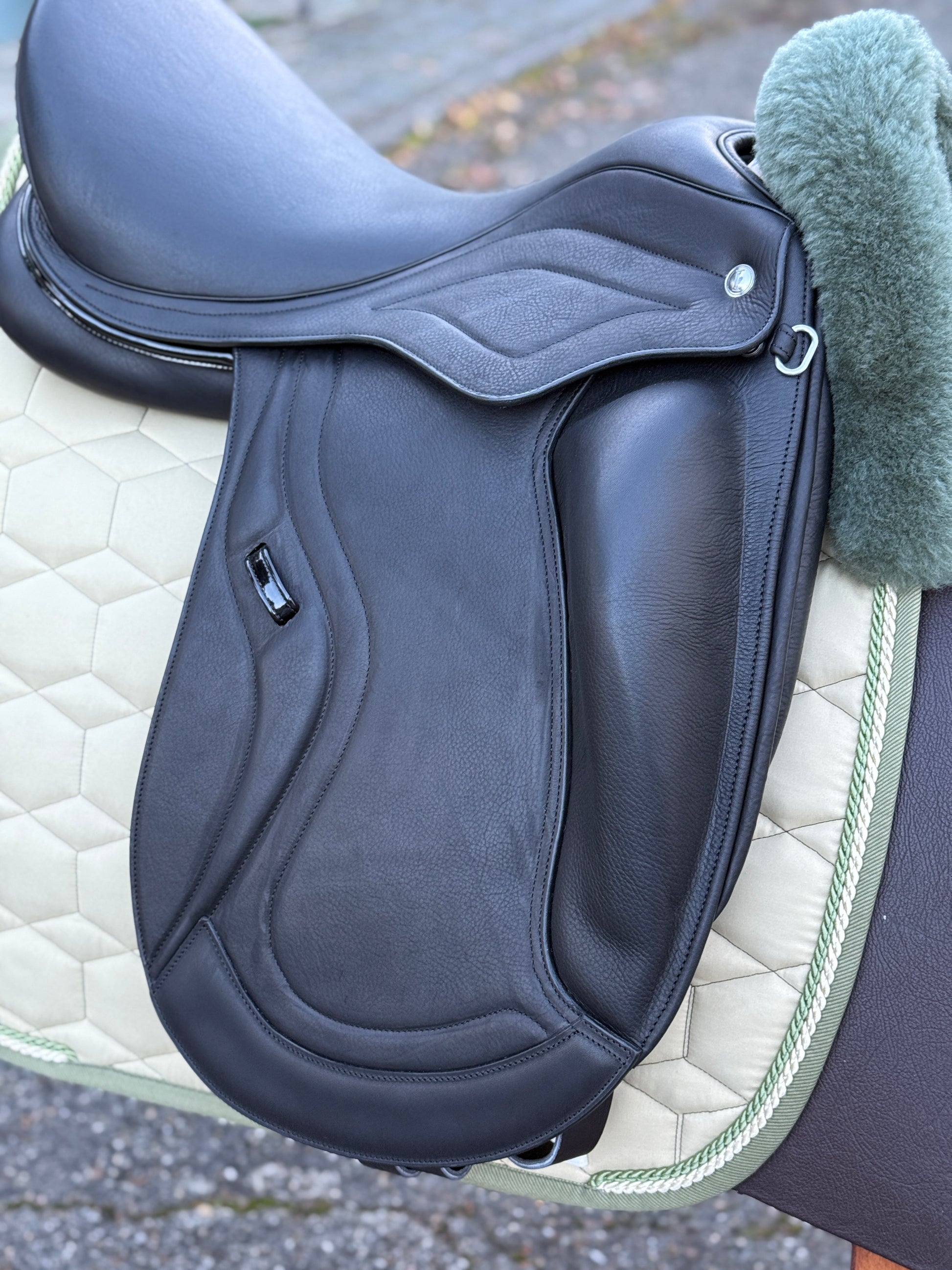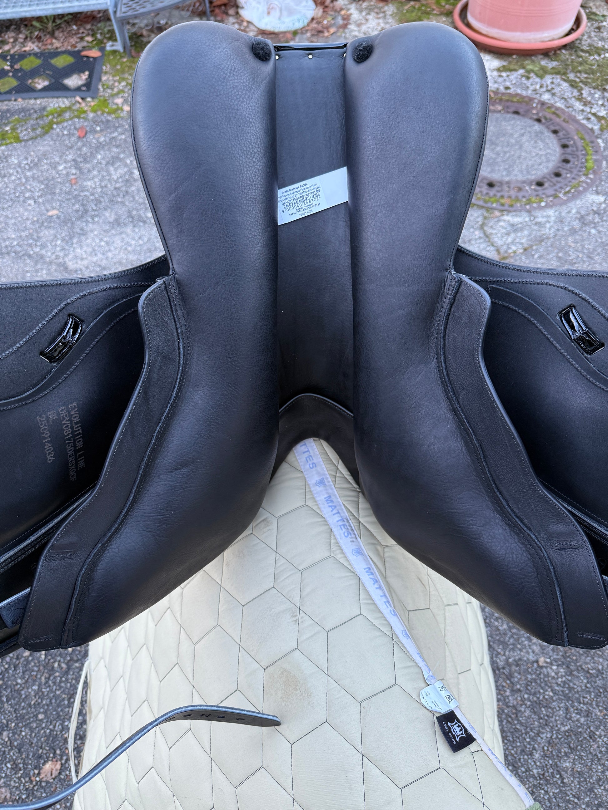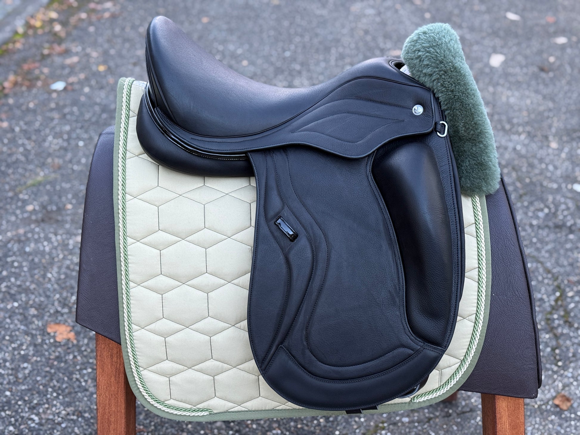 La Ikonic Pro Evolution es una silla que impresiona en todos los aspectos. La placa de garganta extraíble facilita y agiliza su ajuste. Los paneles de doble capa, gracias a la capa de látex, se adaptan con gran suavidad al dorso del caballo, pero también se pueden ajustar gracias al relleno de lana. El cuero proporciona un agarre excepcional y, combinado con las rodilleras integradas y la solapa única, proporciona al jinete una experiencia de montar extremadamente cómoda y acogedora.