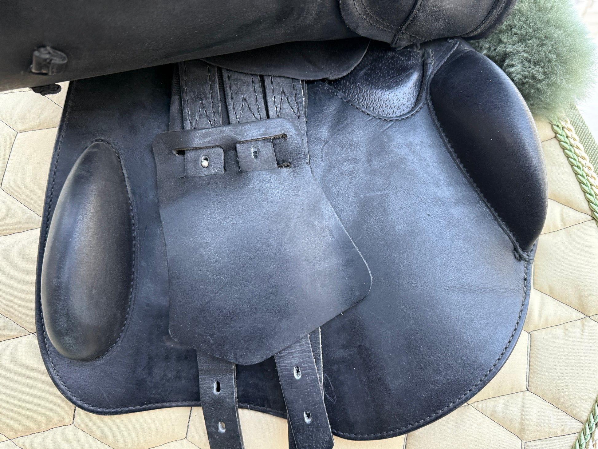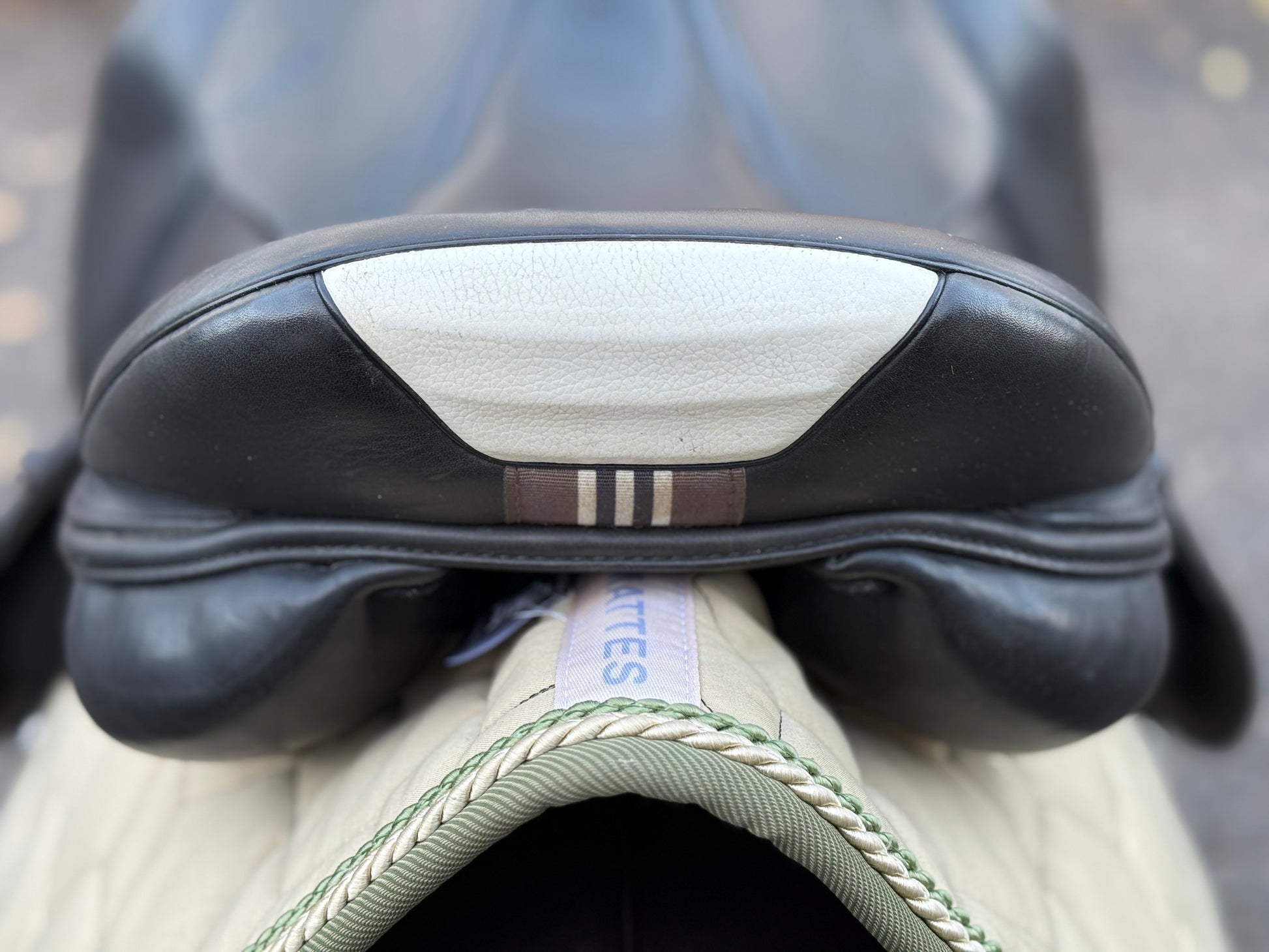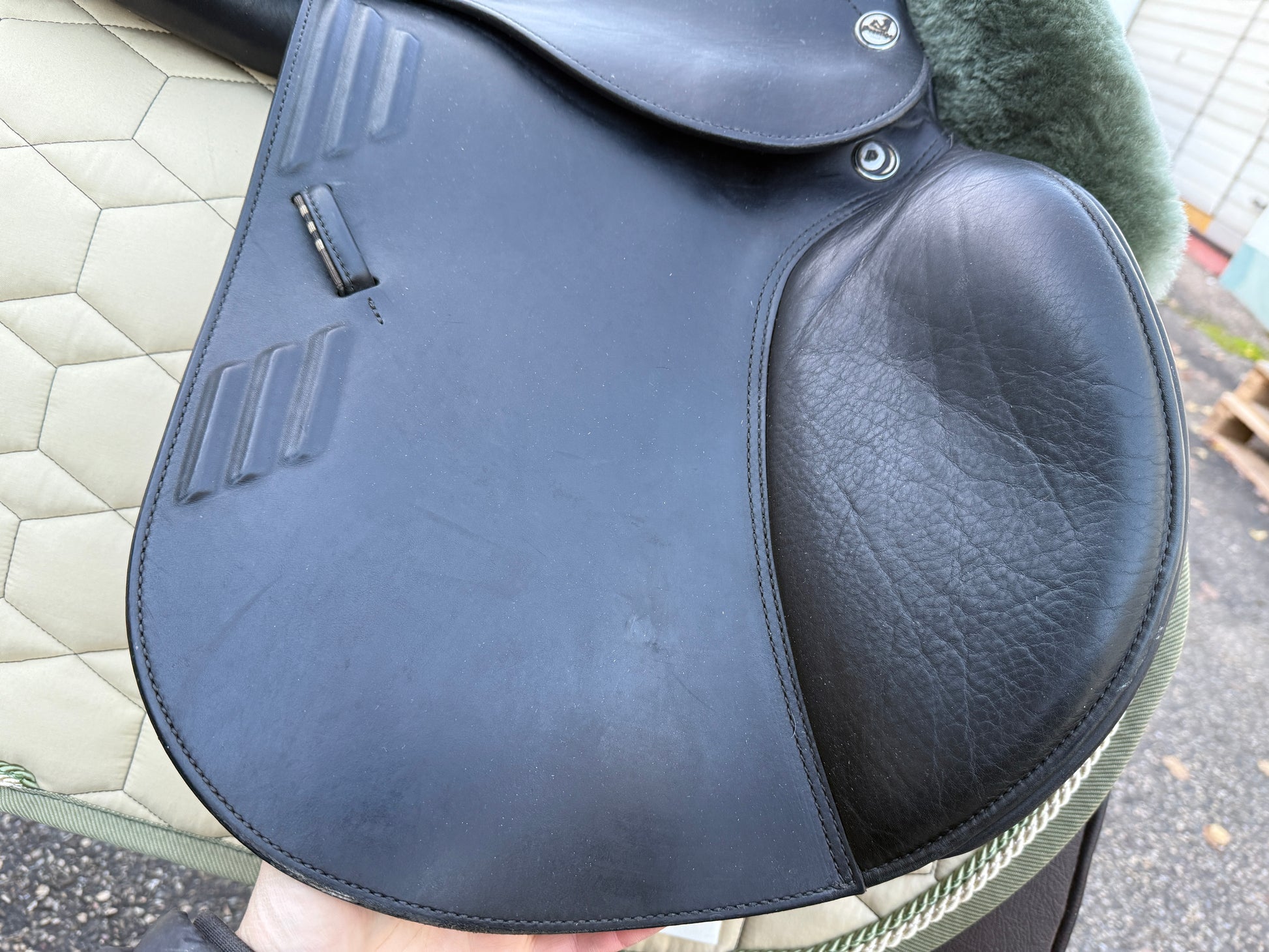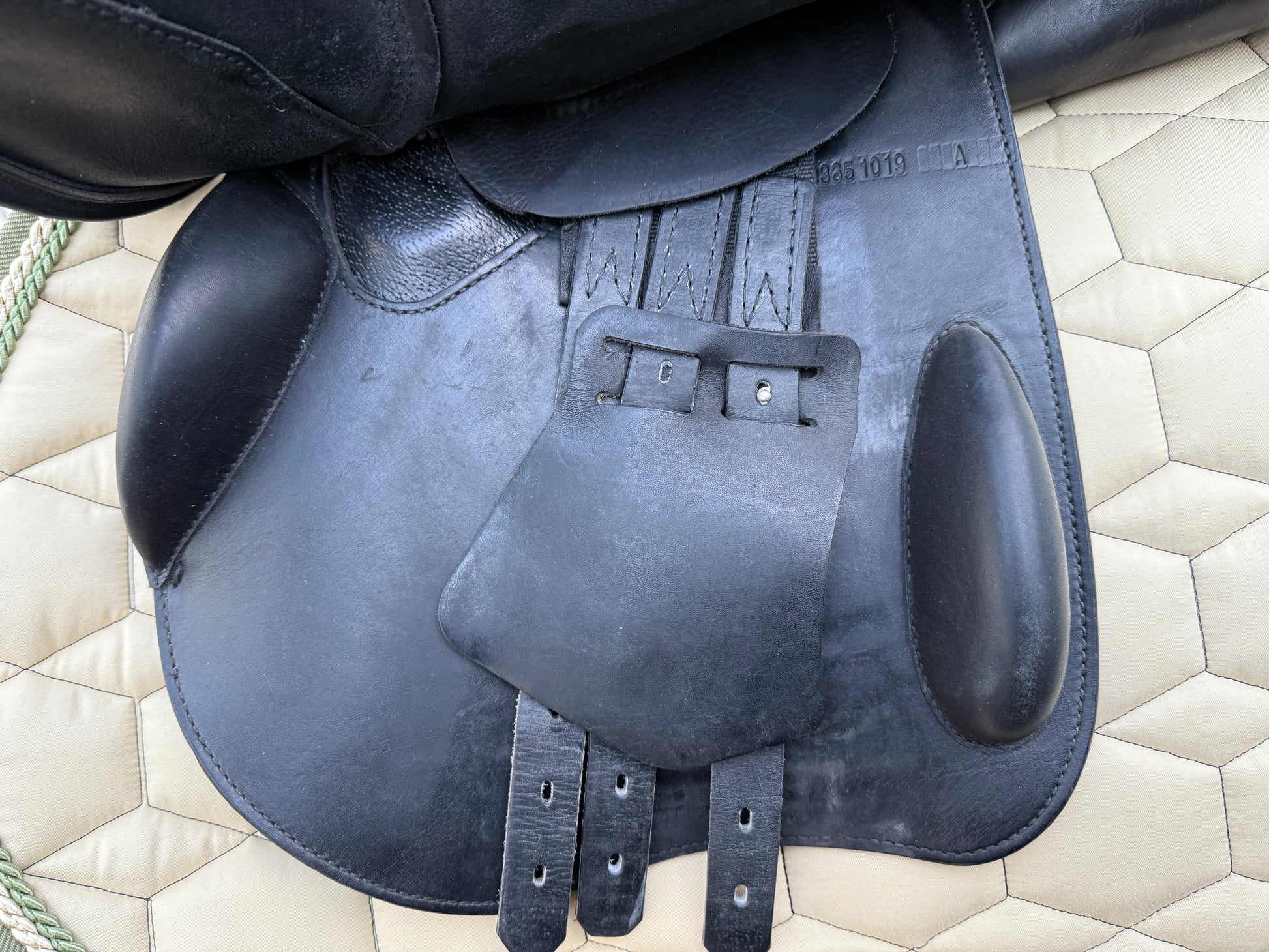 Der Prestige Synchrony CPS ist eine wahre Innovation im Springsattelbereich. Er bietet durch seine weichen, flächigen Kissen eine breite, aber kurze Auflage. Durch die leicht zurückgesetzten Ortspitzen bietet er auch an der Schulter extrem viel Platz. Für den Reiter ist er extrem komfortabel - durch das weiche anschmiegsame Leder und die super softe CPS Sitzschale. Der Sattel hat einen TEST Aufdruck auf dem linken Blatt.