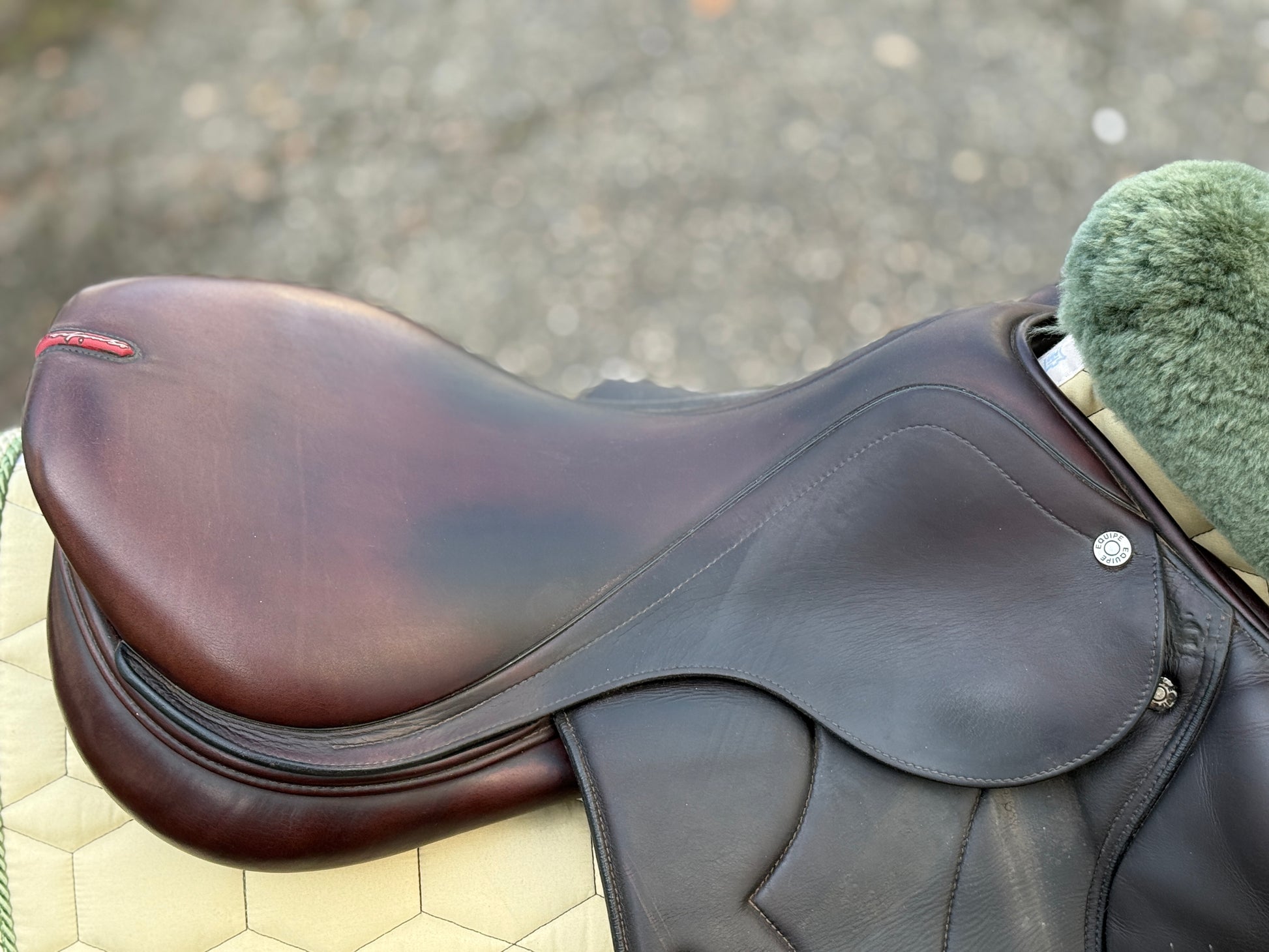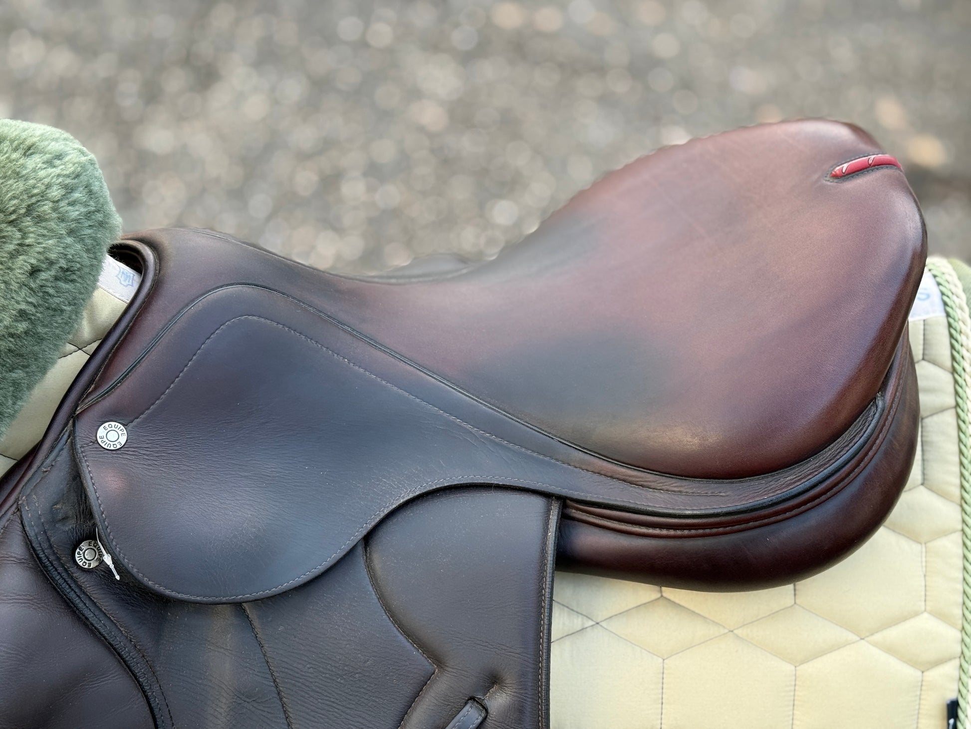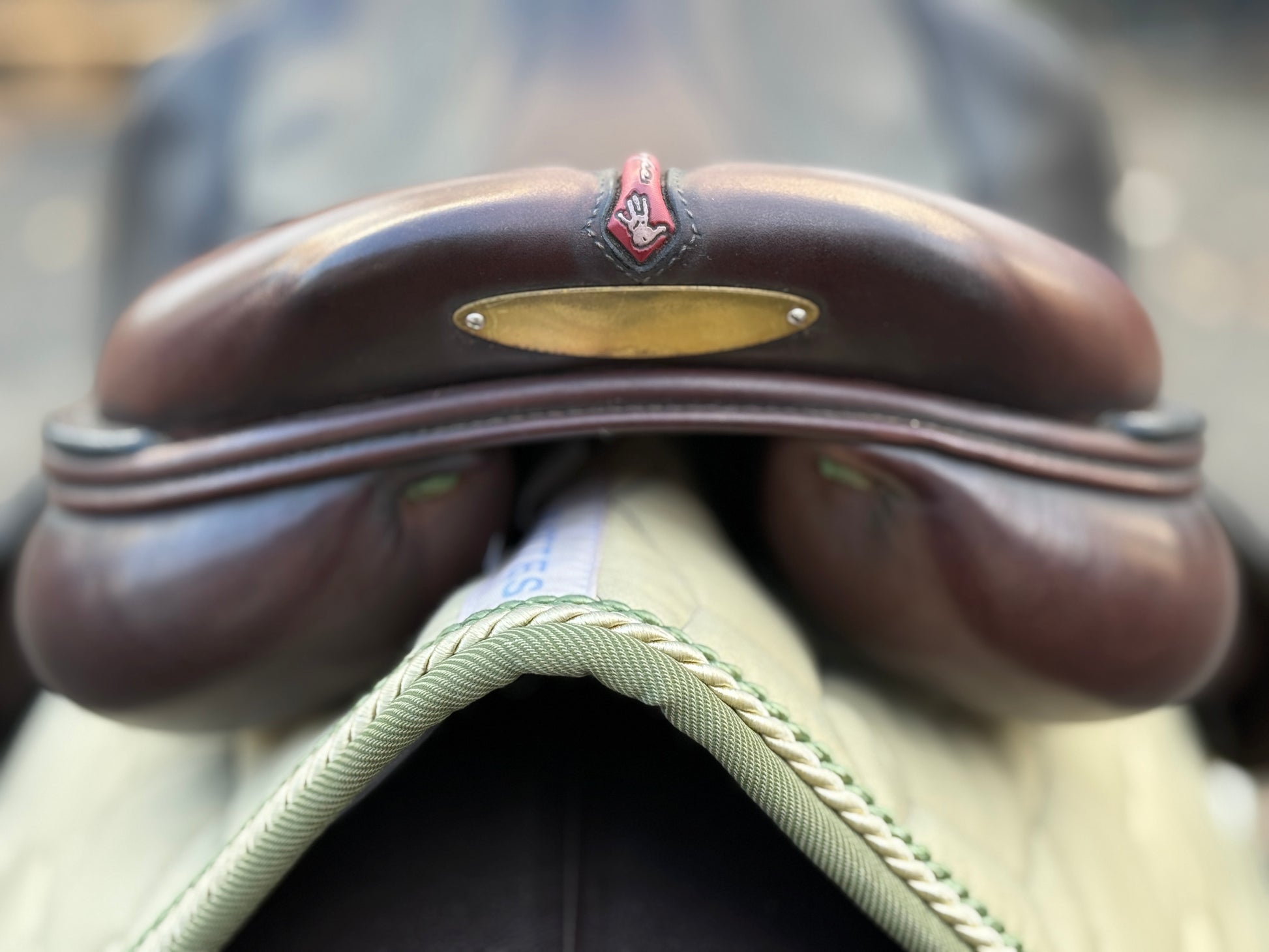 Der Synergy Special von Selleria Equipe ist ein professioneller Springsattel für den Parcours und setzt den Reiter durch die Latexkissen besonders nah ans Pferd.