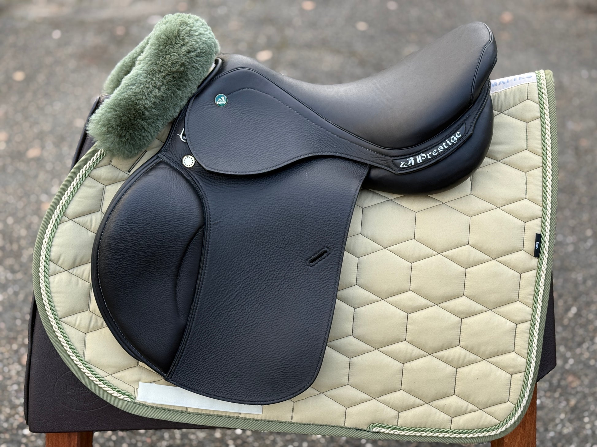 Dieser schicke Springsattel von Prestige besticht nicht nur durch sein tolles Sitzgefühl, sondern auch durch die tolle Passform, die er seinen kurzen, französisch aufgehängten Bananenkissen zu verdanken hat! Der Sattel ist aus erster Hand, Baujahr 2022 und ist absolut neuwertig. Er o